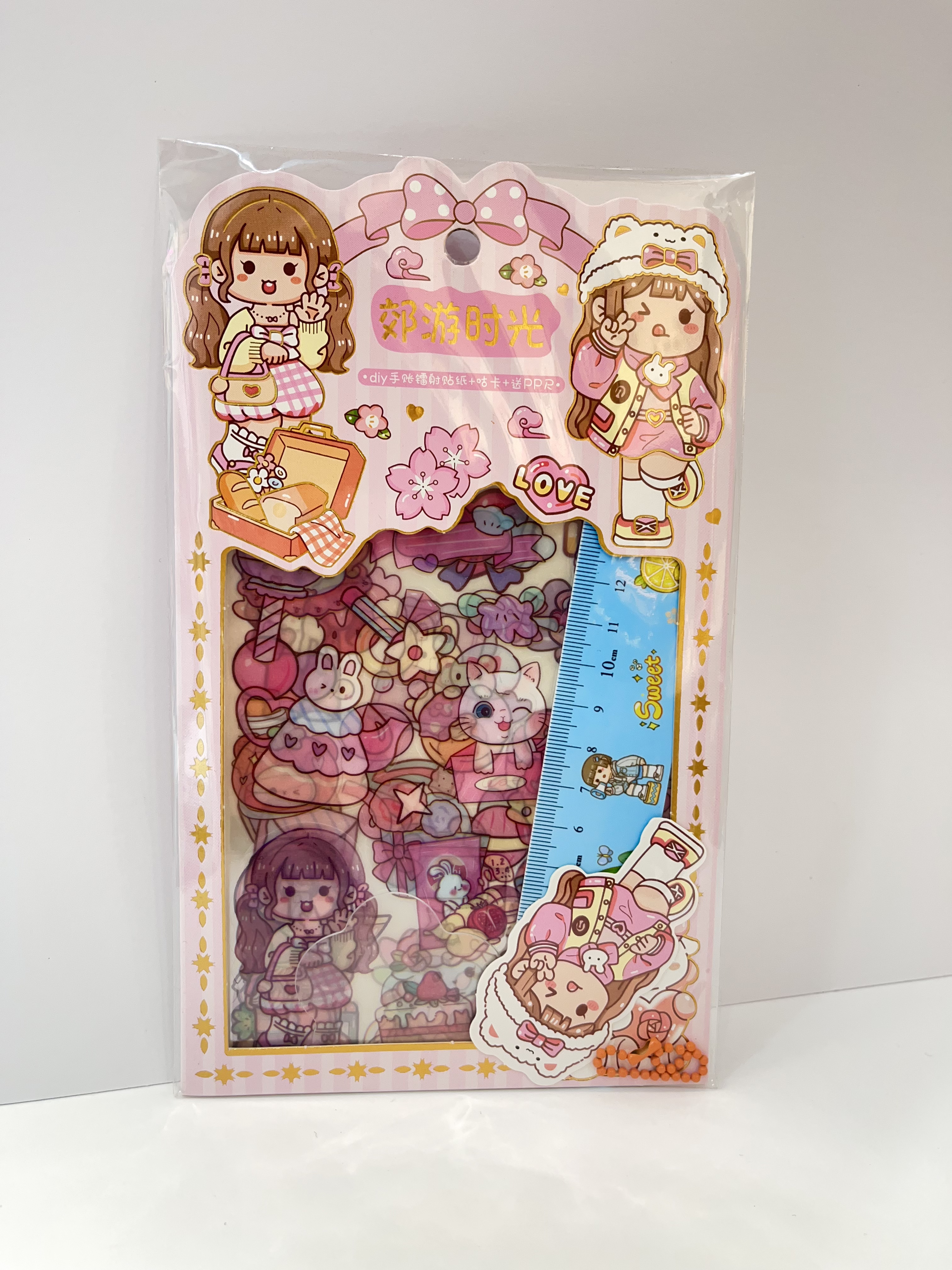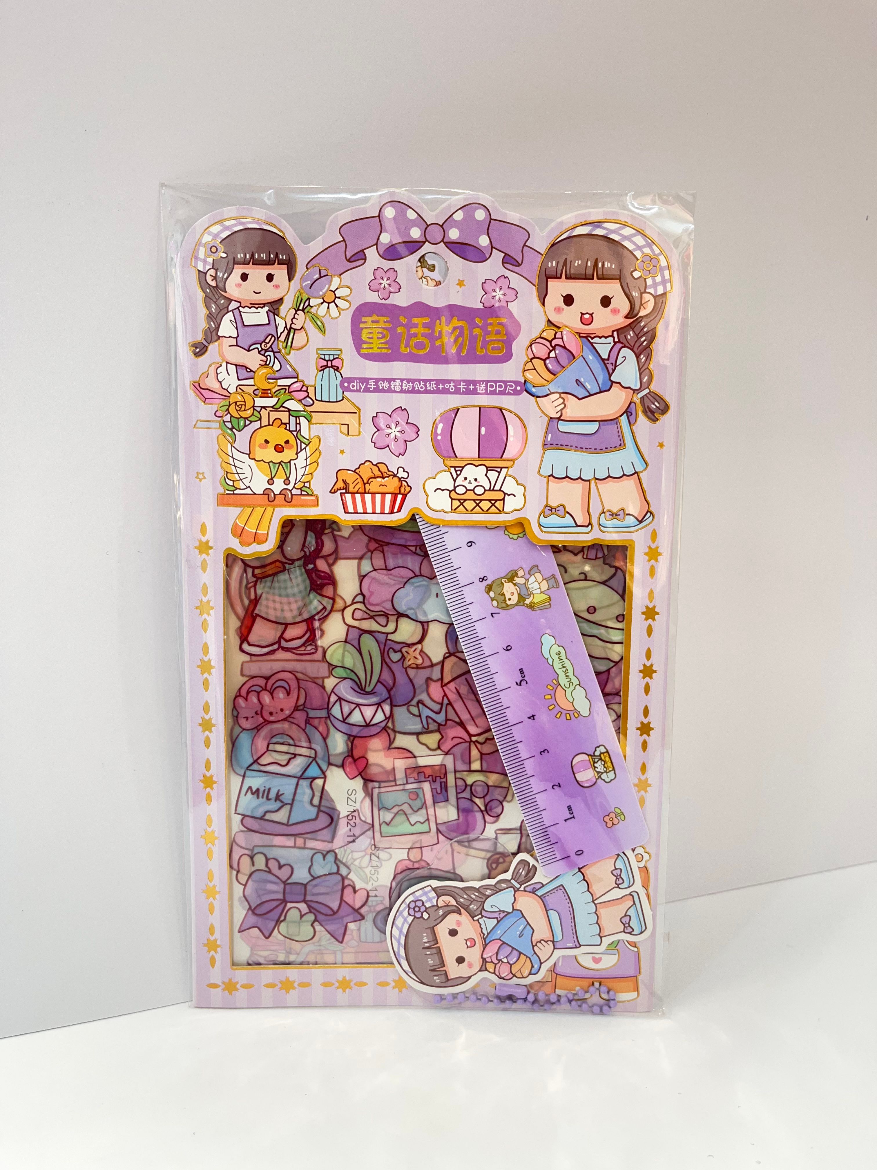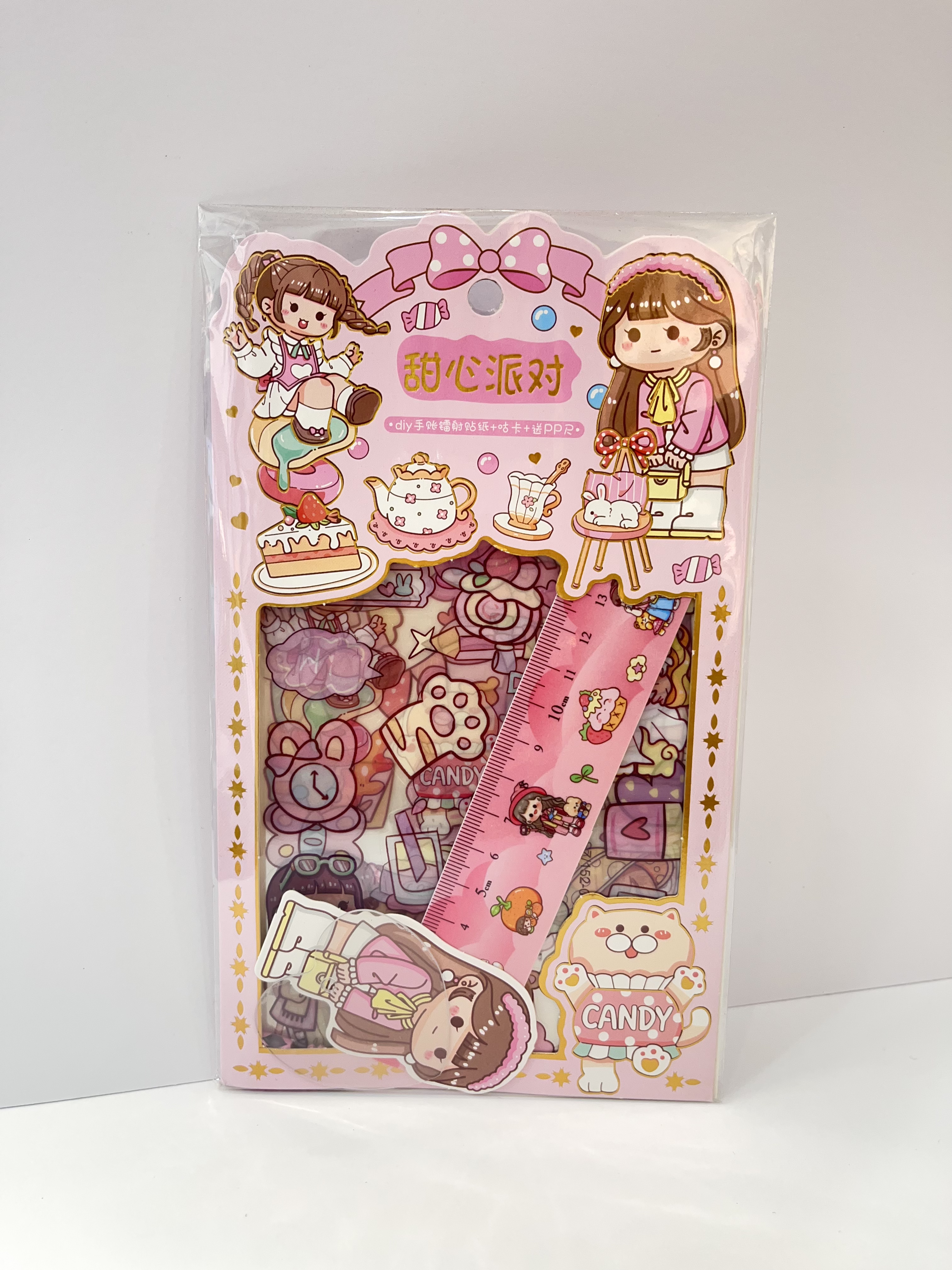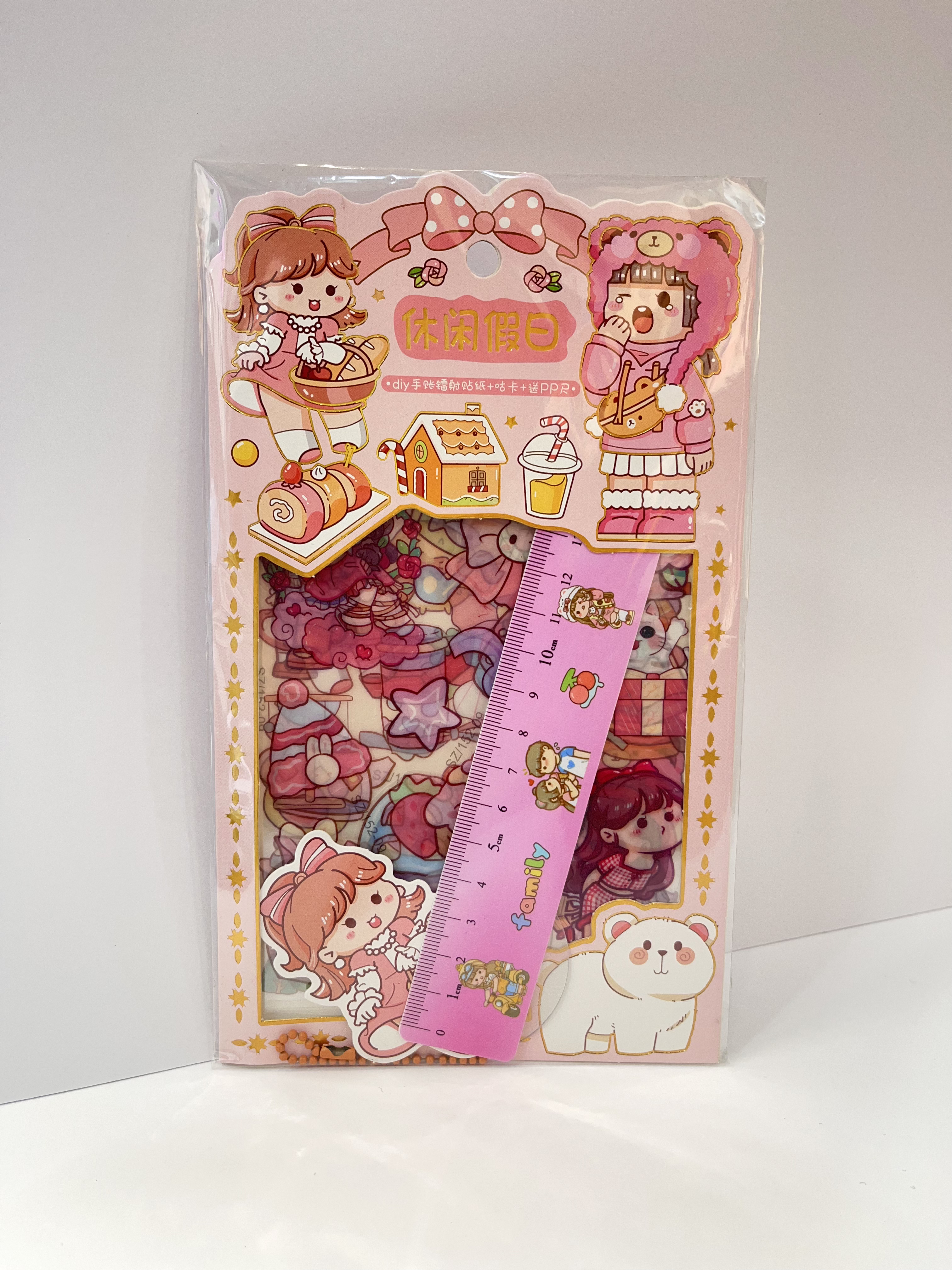 ست استیکر 4 برگ آویزدار و خط کش طرح انیمه